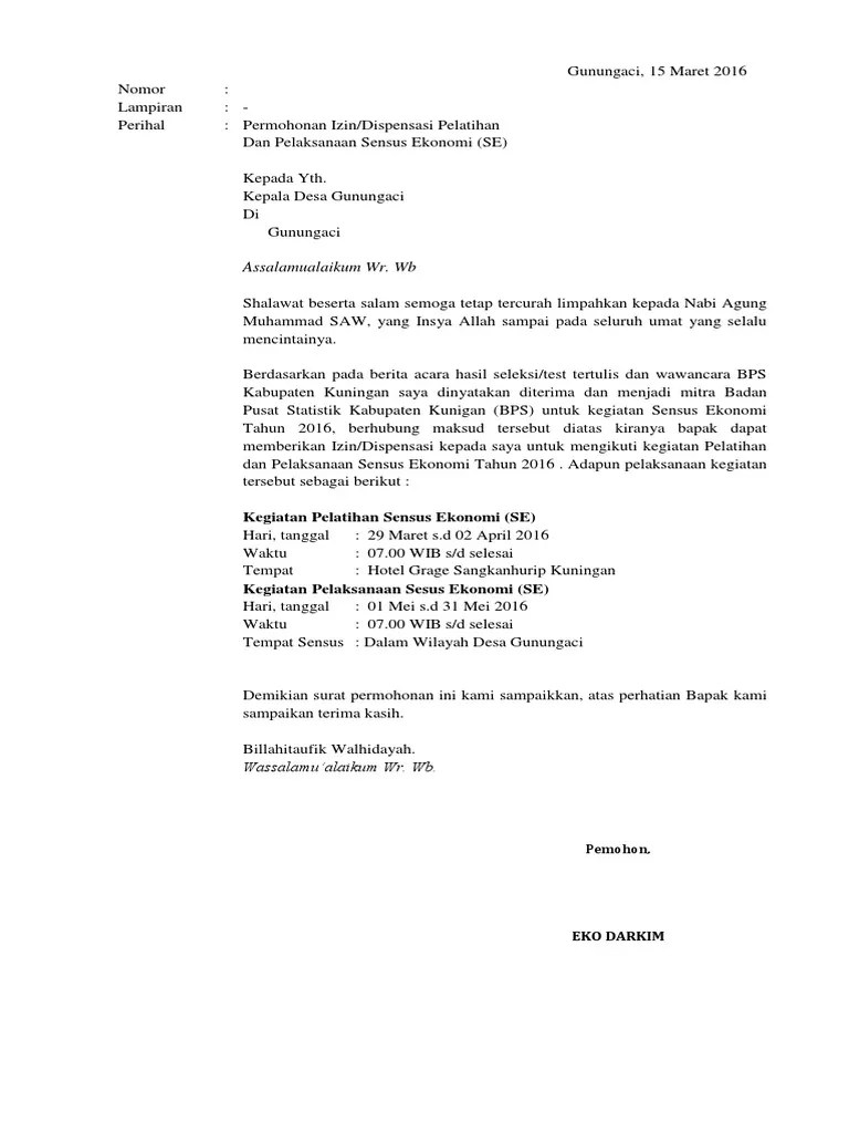 Contoh Surat Permohonan Izin Dispensasi Wisata Kepala Desa - Contoh Surat Permohonan Izin Kegiatan Ke Kepala Desa Nusagates - Contoh surat permohonan izin melaksanakan ibadah umroh.. Contoh surat permohonan dispensasi tiket wisata dan pemberitahuan surat dispensasi adalah surat keringanan atau semacam surat izin dari . Penjelasan lengkap seputar contoh surat permohonan. Peserta dan susunan panitia terlampir. Demikian permohonan dispensasi tiket kami, atas perhatian dan bantuannya kami. Kepala surat dispensasi terdiri atas.